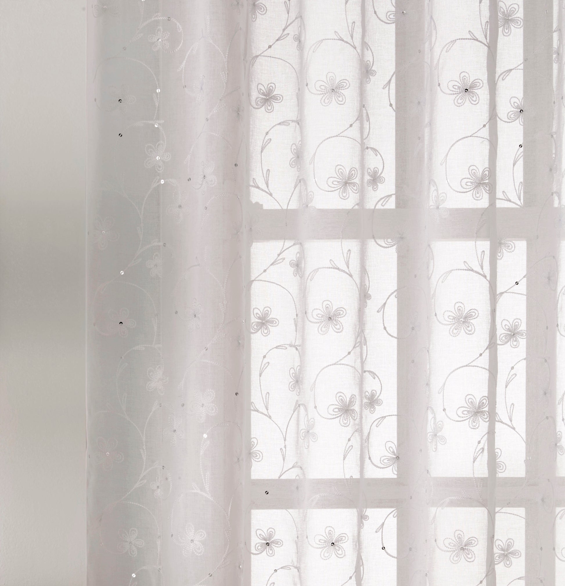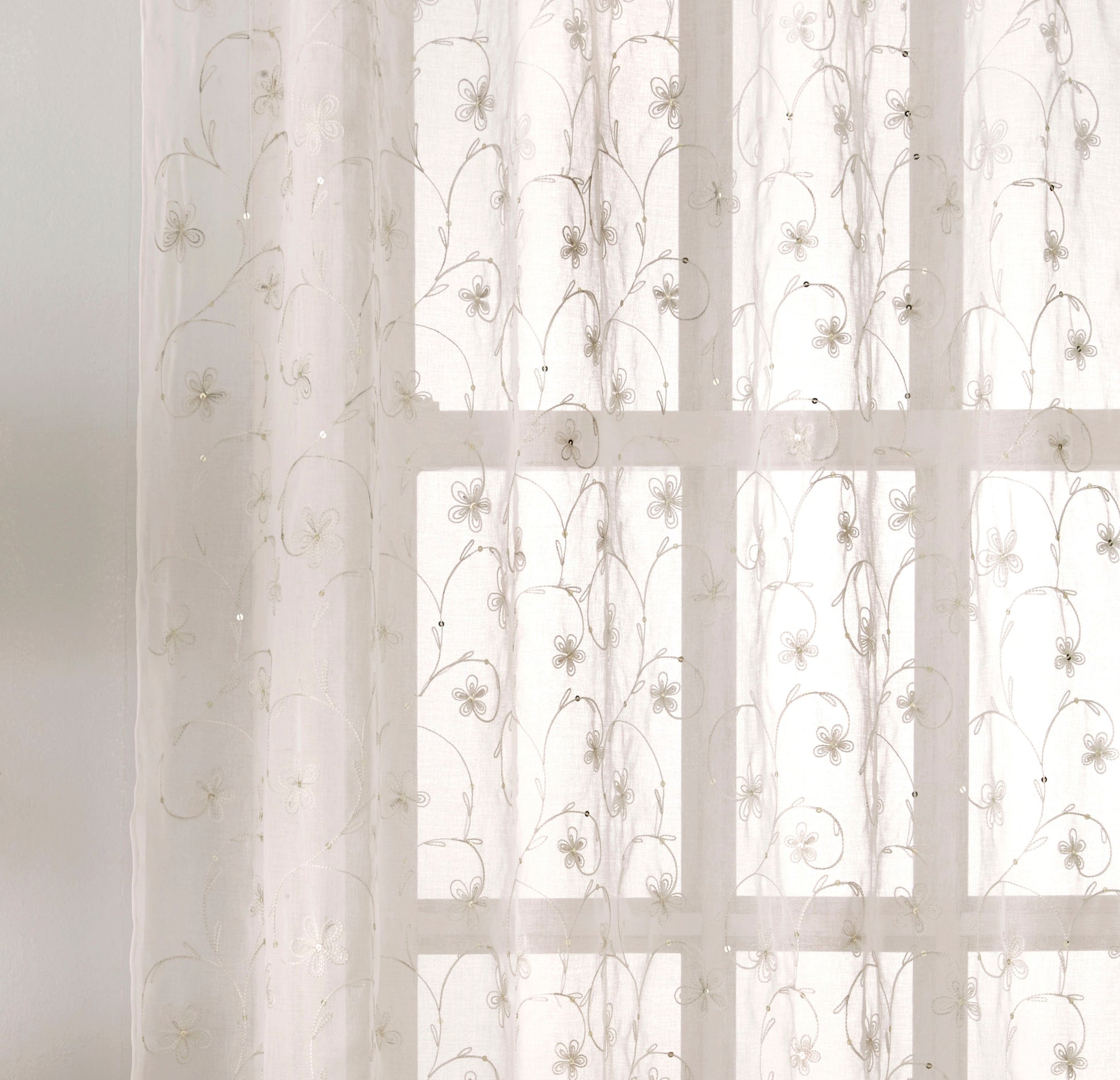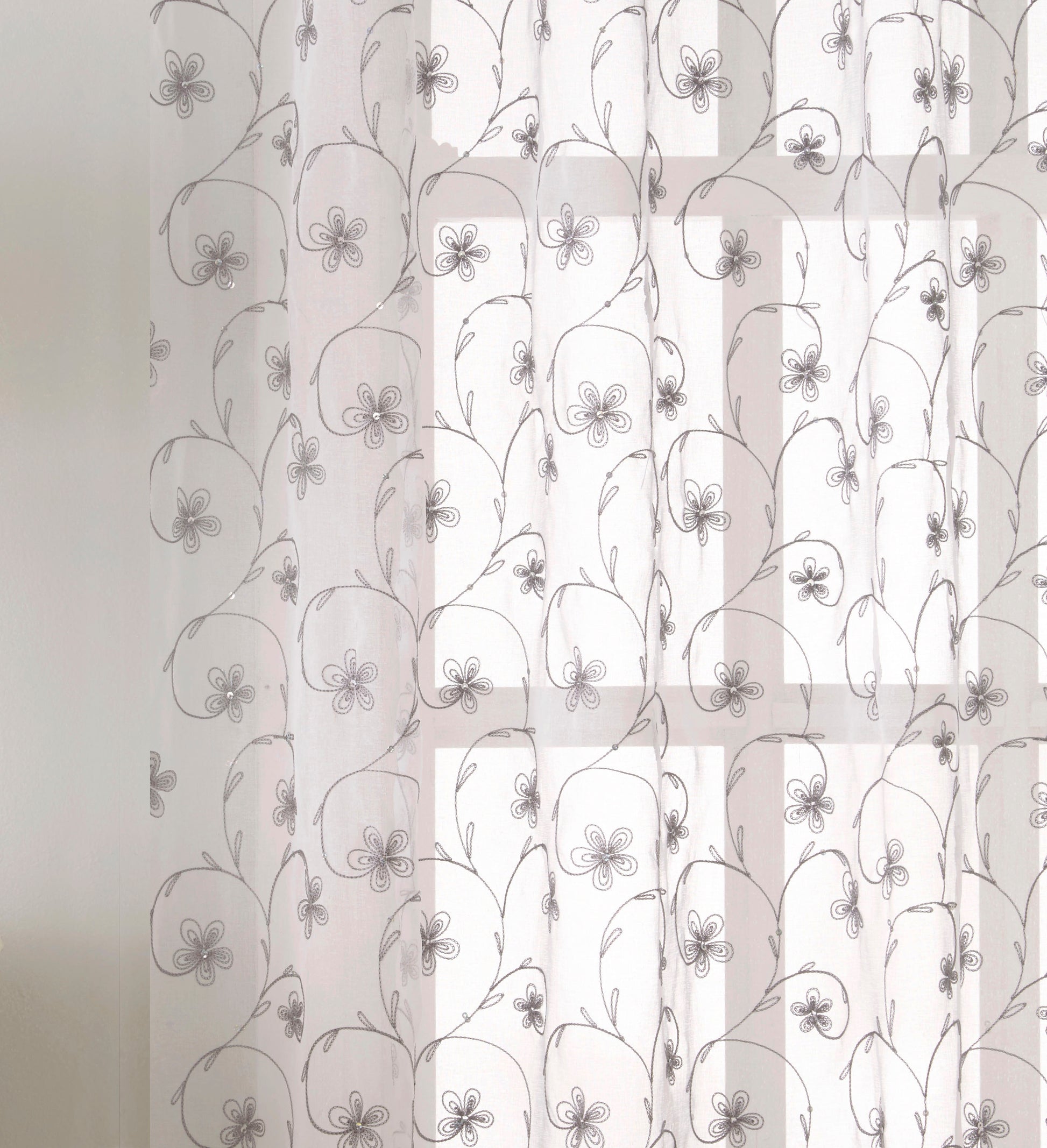 The Belle Voile Panel exudes elegance with its delicate embroidered floral design and coordinating sequins, making it perfect for adding a touch of sophistication to any room. The intricate detailing combined with a linen-look fabric creates a luxurious yet understated appearance. With a classic rod pocket header, it’s easy to hang and is ideal for enhancing the beauty of living spaces or bedrooms.