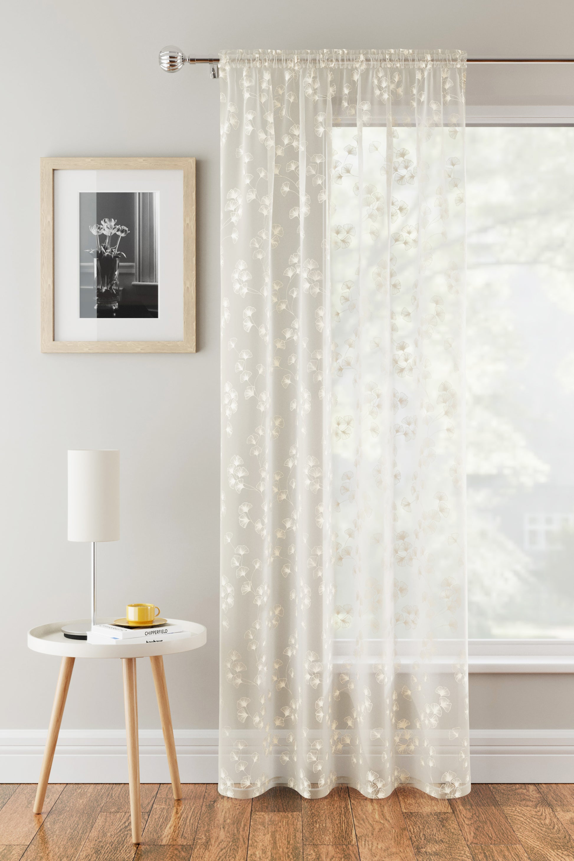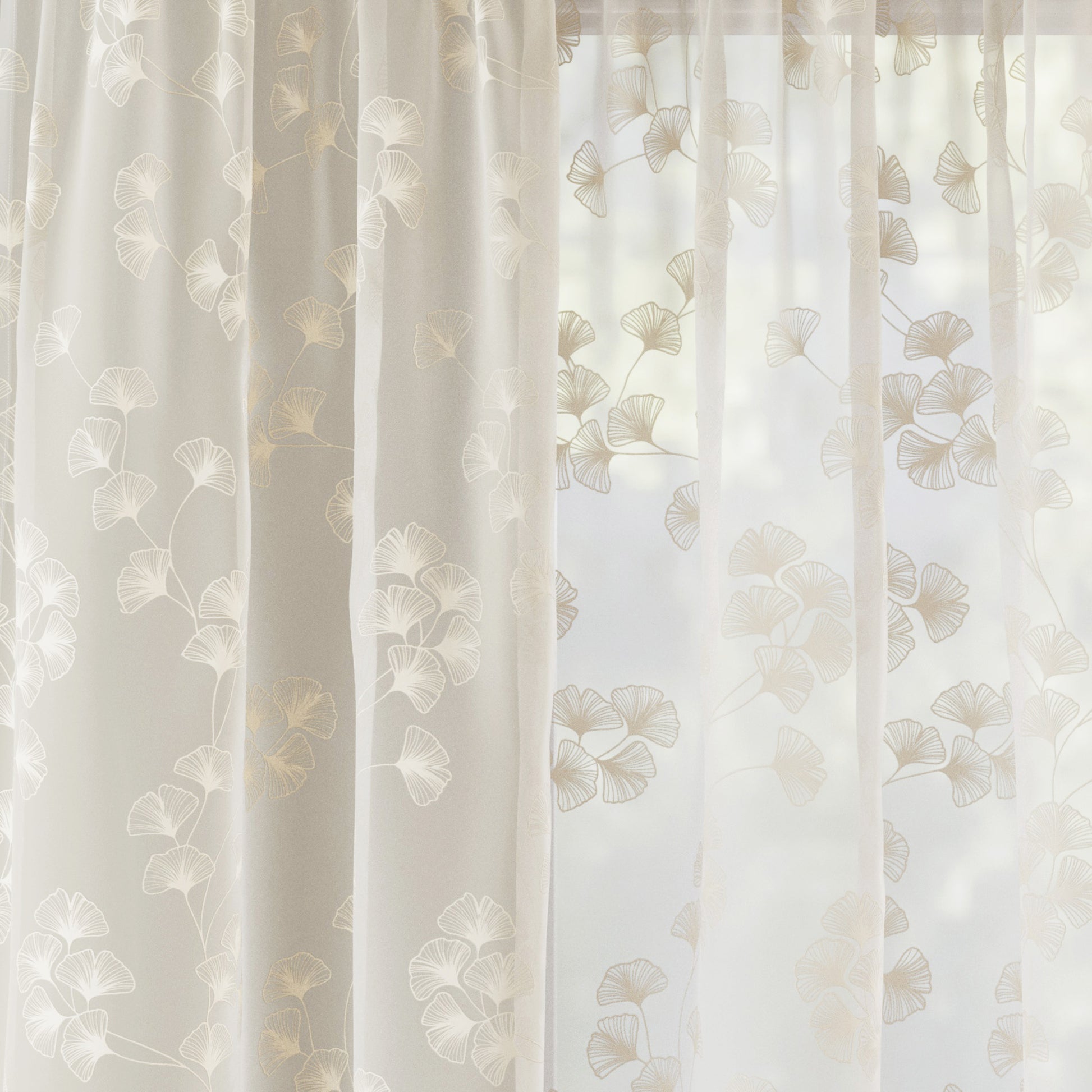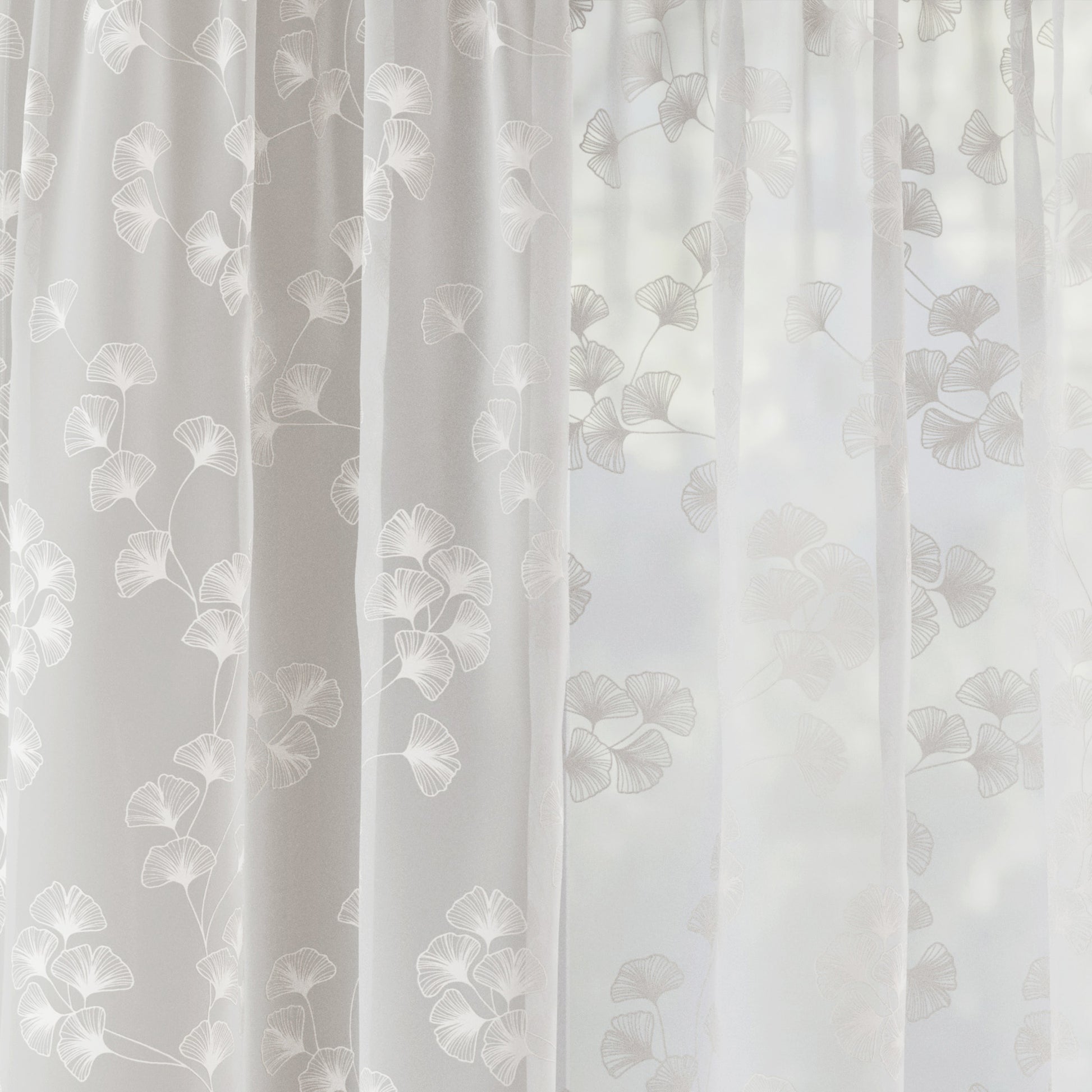 The Delilah Voile Panel features a beautiful, all-over gingko leaf print on sheer voile fabric, adding a touch of nature-inspired elegance to any room. With a soft, light-filtering effect, this panel enhances privacy while maintaining an airy feel. The rod pocket header allows for easy hanging, making it perfect for living spaces, dining rooms, or bedrooms looking for a subtle, refined look.
