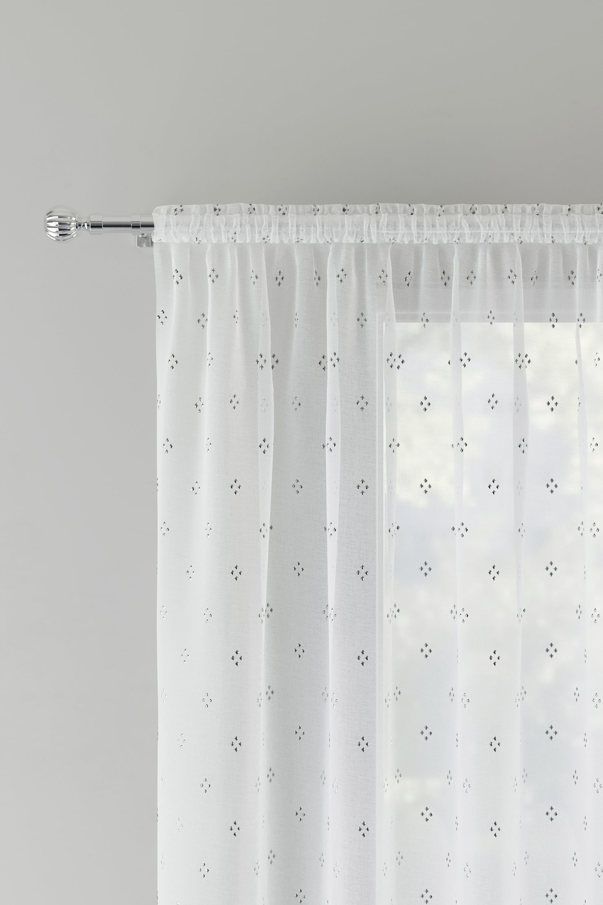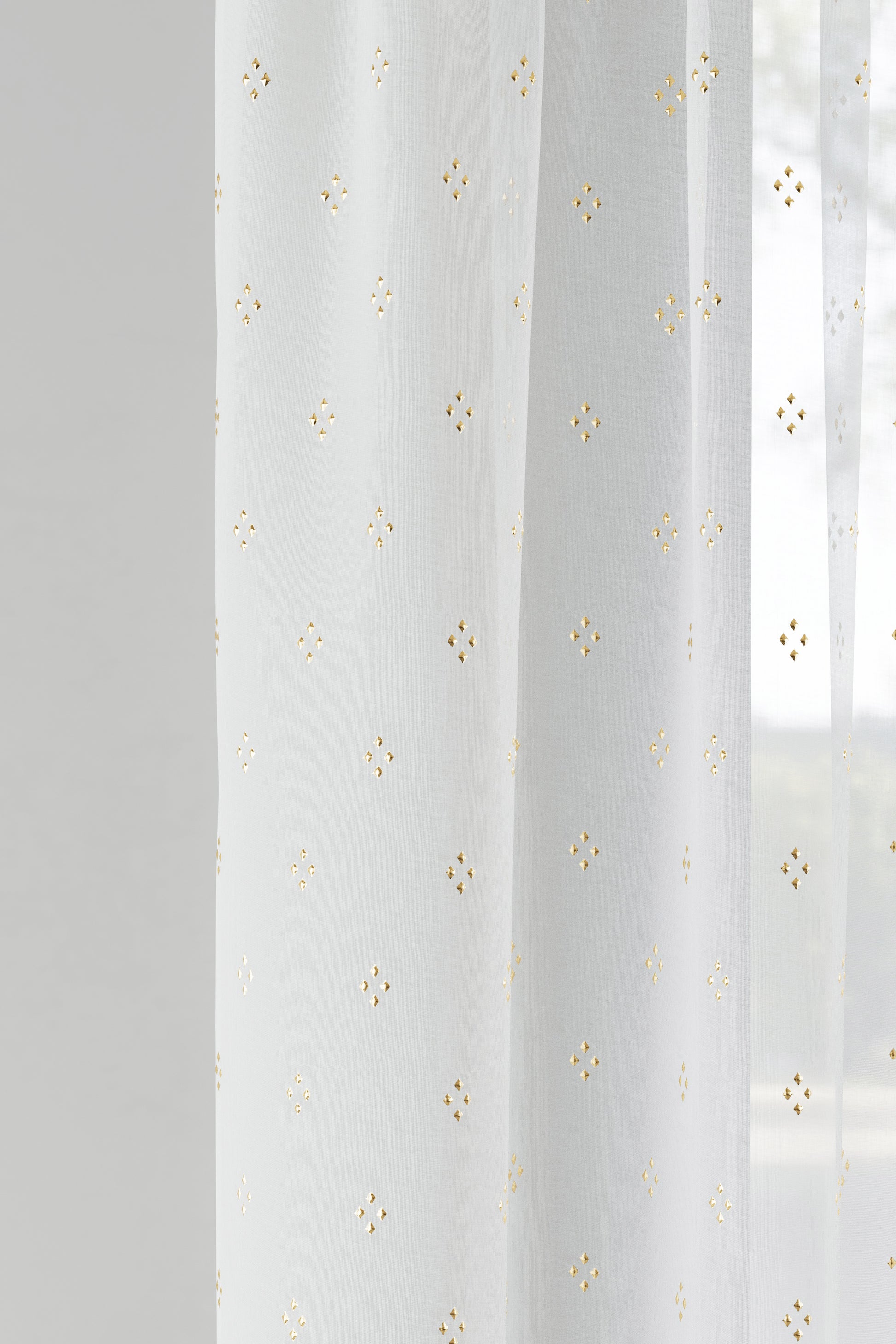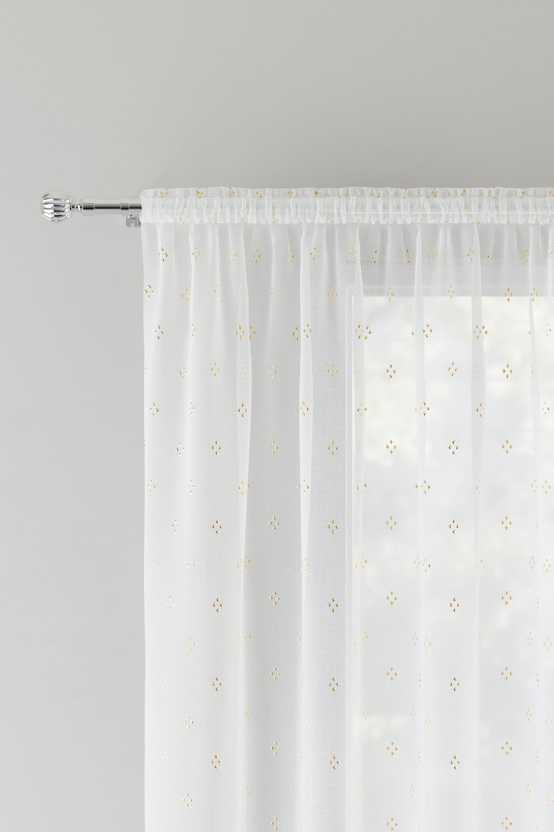 The Destiny Voile Panel brings an elegant, shimmering effect to any space with its metallic finish. Featuring a classic rod pocket header, it is easy to hang and creates a light, airy atmosphere while maintaining privacy. The sheer fabric gently filters light, making it perfect for enhancing living rooms or bedrooms with a subtle yet sophisticated touch.