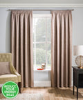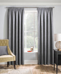 The Matrix Readymade Curtain features a refined embossed textured design that adds depth and sophistication to any interior. Constructed with woven thermal blockout fabric, it effectively minimizes external light and helps maintain a comfortable temperature year-round. The classic 3” tape top header makes this curtain easy to hang and suitable for various decor styles, offering both practicality and elegance.