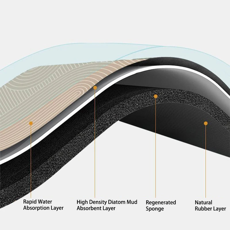 - Quick-Drying & Highly Absorbent: The diatom mud fabric surface quickly absorbs moisture, while the foam absorbent layer ensures instant water evaporation.