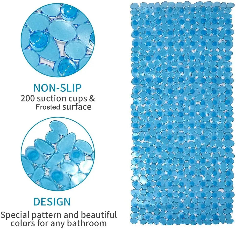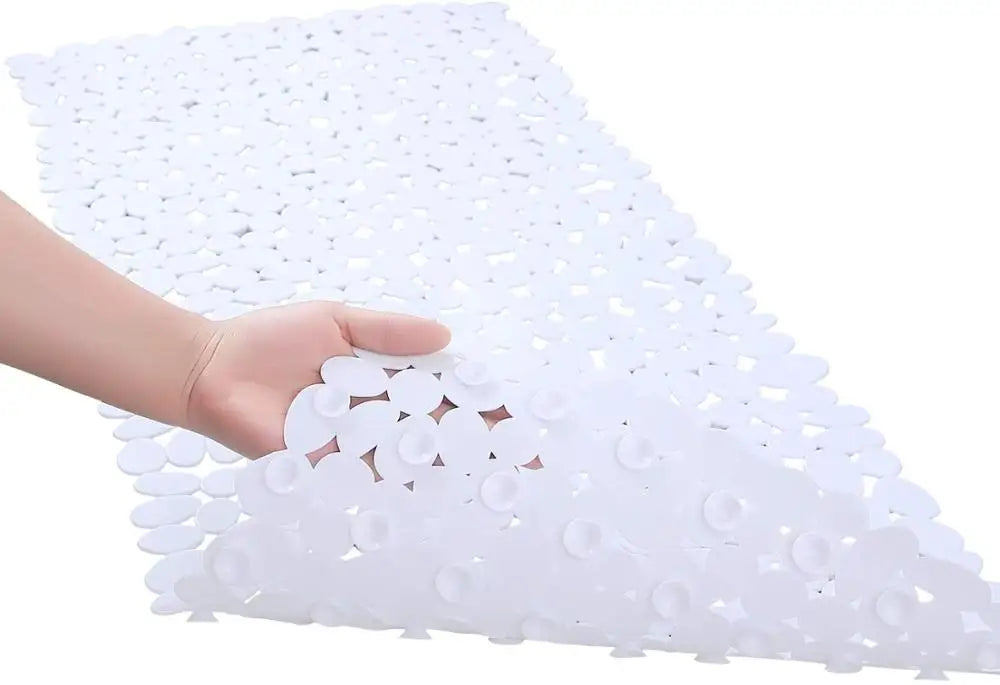 - Non-Slip Bathroom Mat – PVC Suction Cup Bath Mat: Made from antibacterial, elastic, and eco-friendly PVC material, this durable and wear-resistant bath mat ensures long-lasting use.