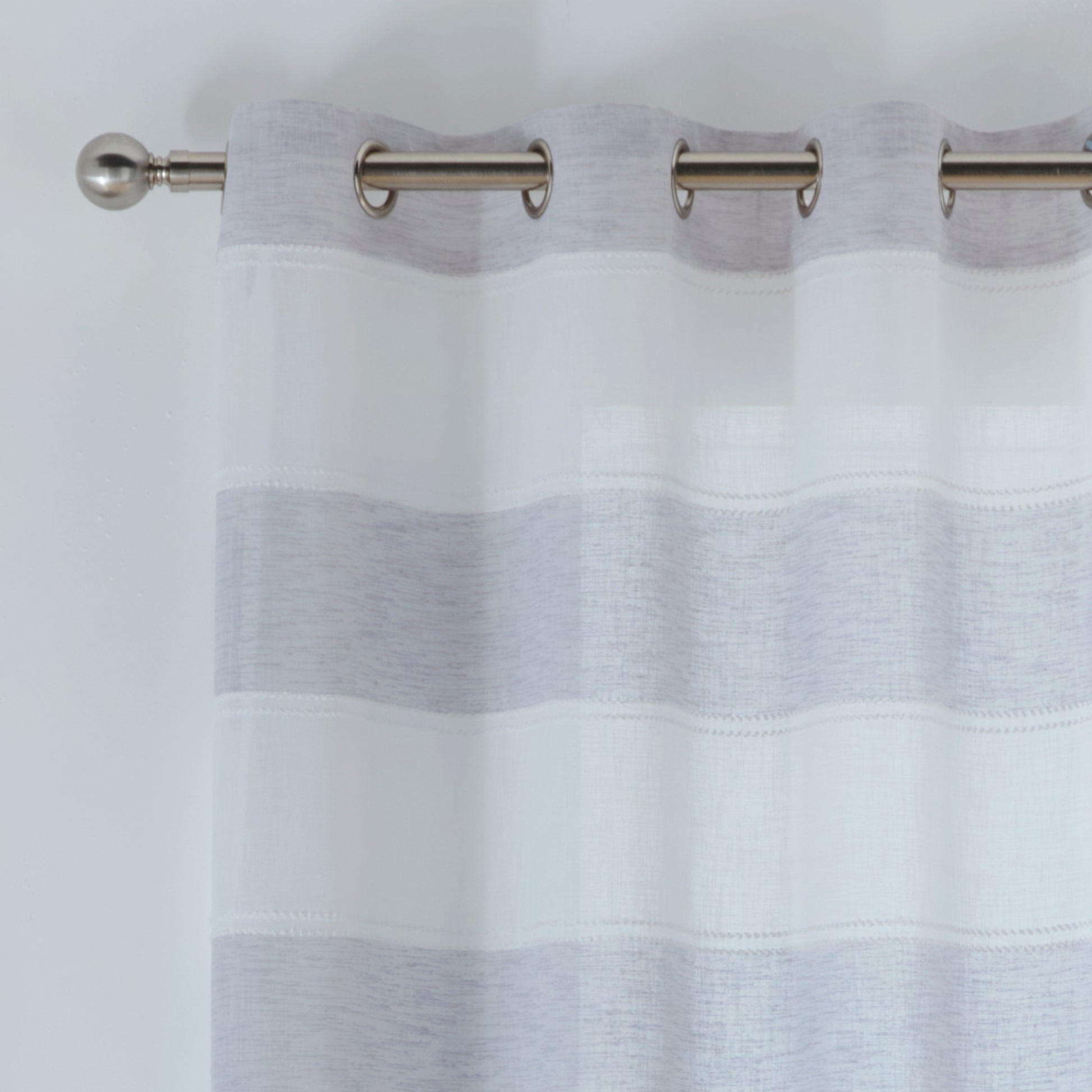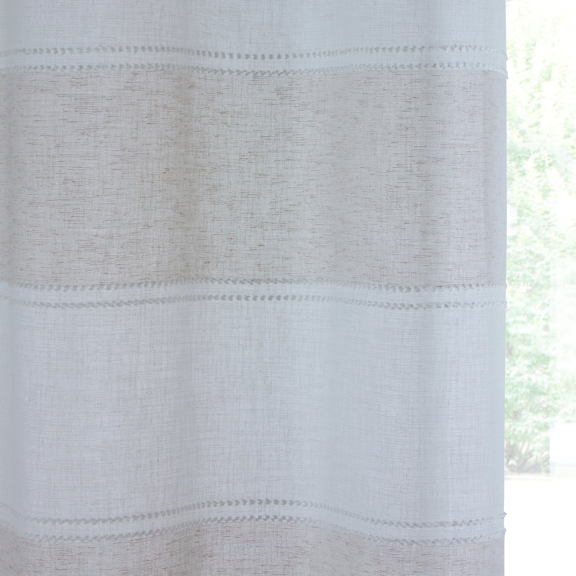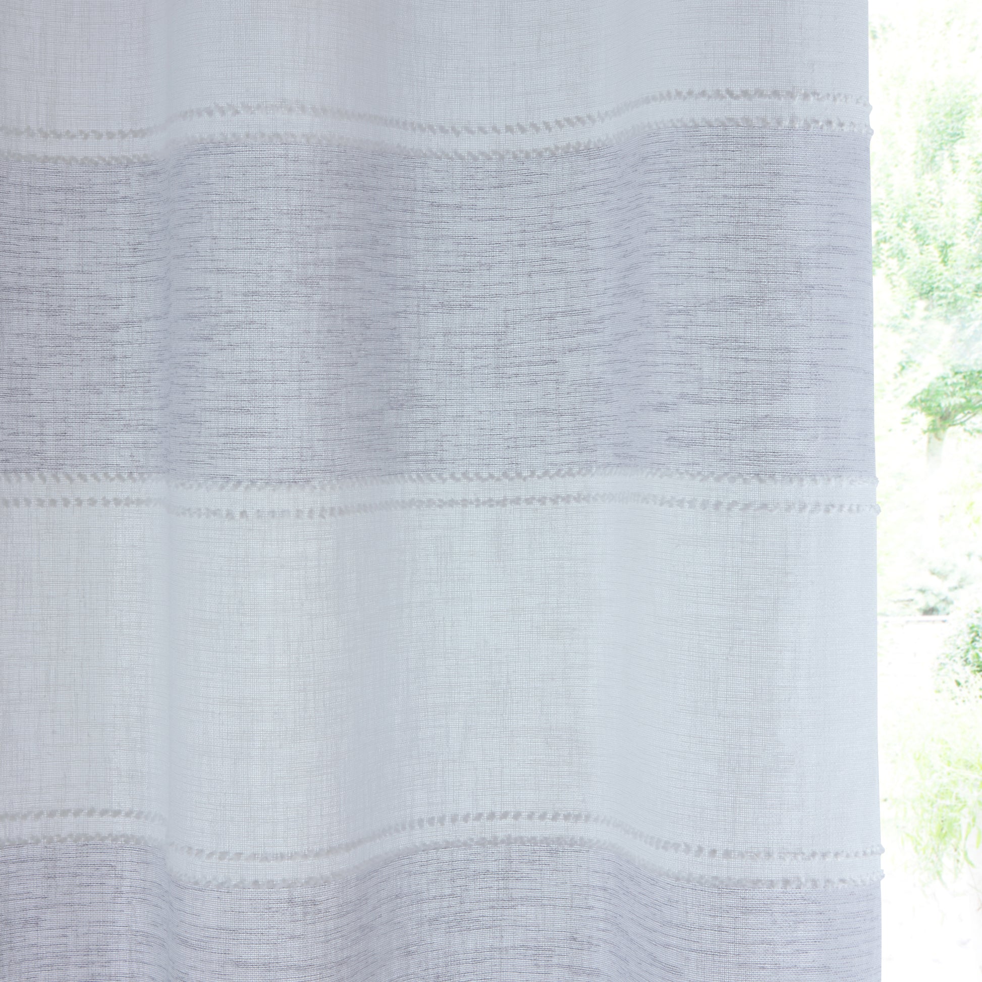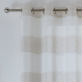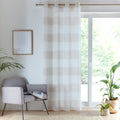The Santorini Voile Panel is a stylish choice with its beautiful linen-look fabric and horizontal colored stripes, adding a contemporary touch to any room. The panel is designed to gently filter light while maintaining privacy, making it ideal for living spaces or bedrooms. The eyelet header ensures easy installation and a neat, modern drape, perfect for adding a soft elegance to your home decor.
