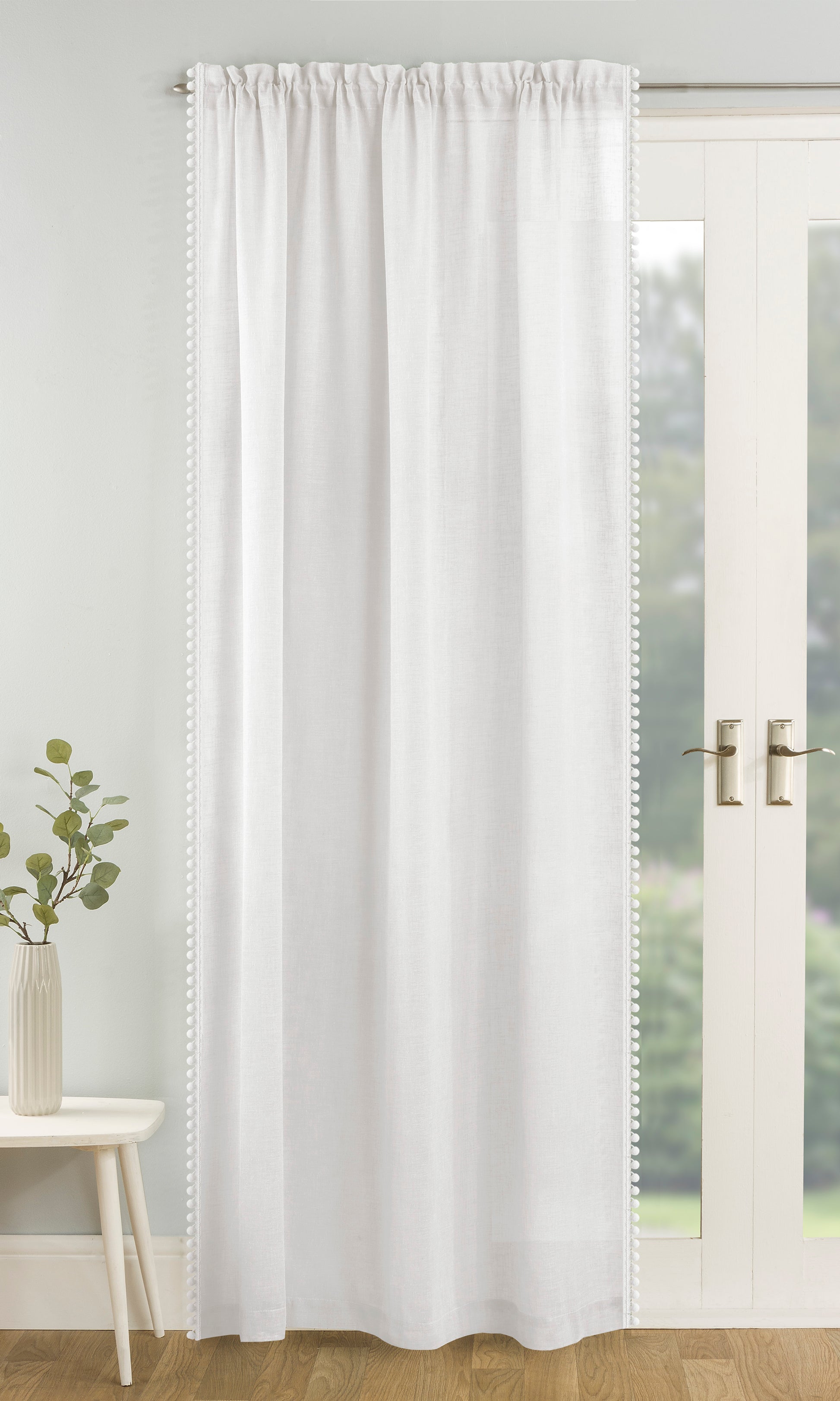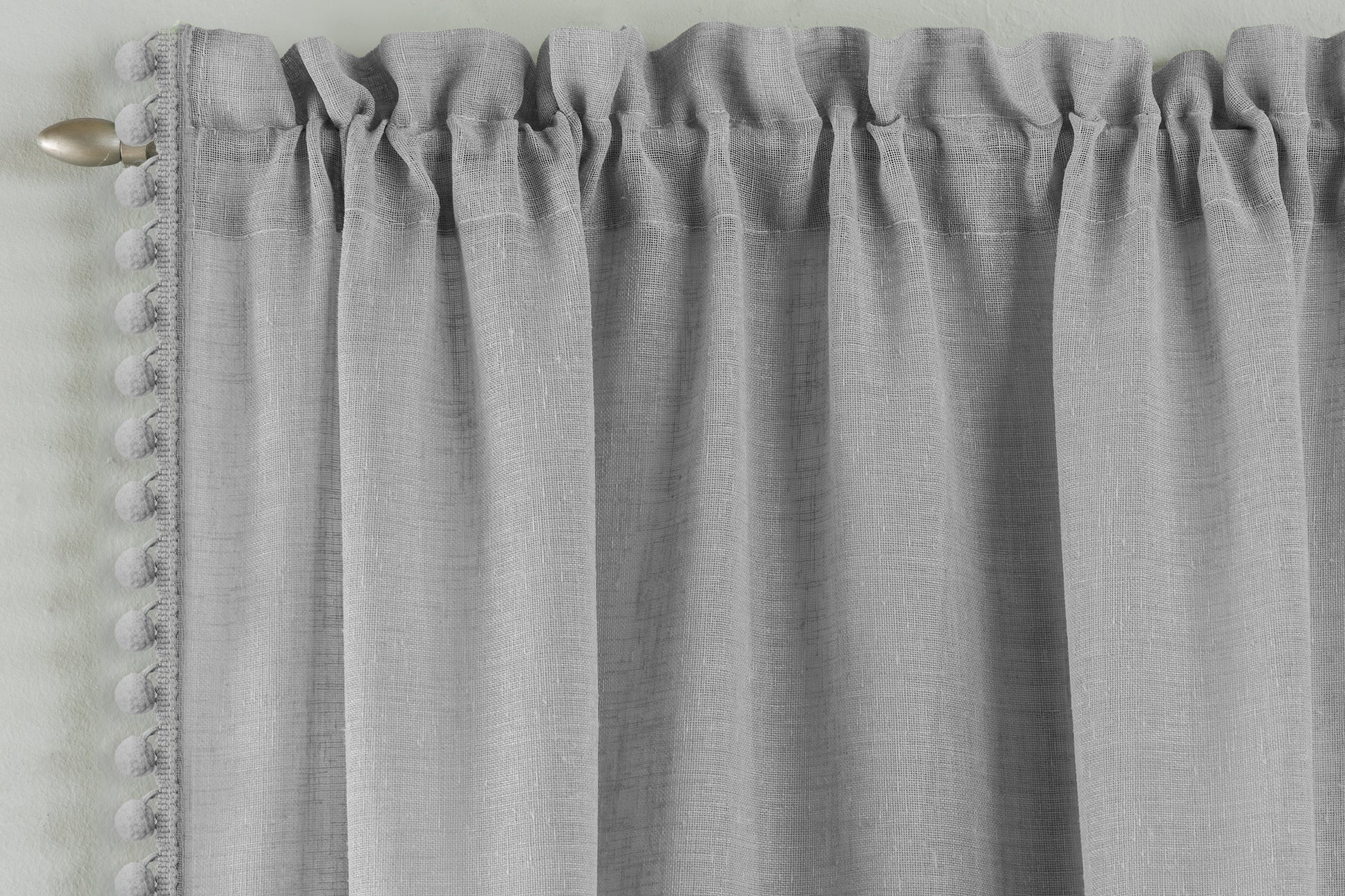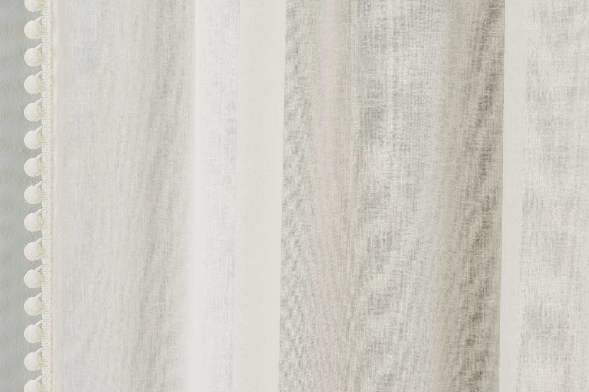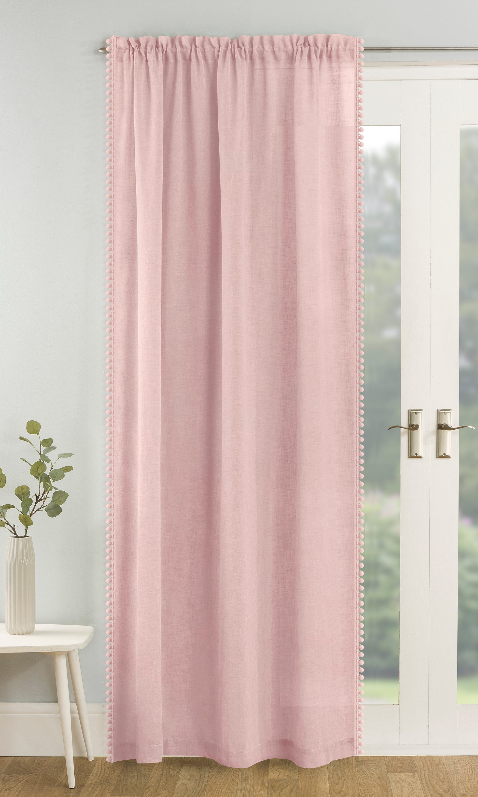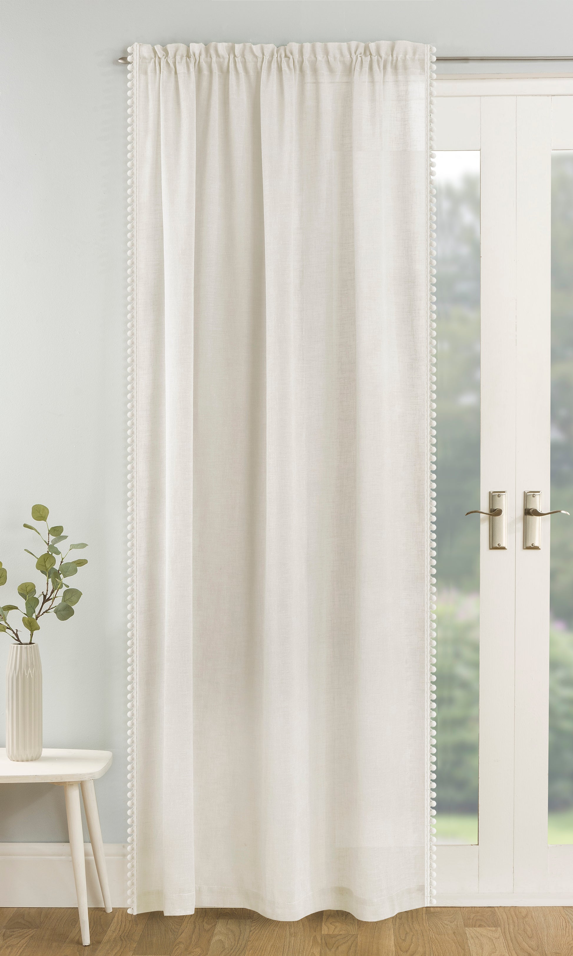 The Tahiti Voile Panel adds a playful and stylish touch with its delicate pom-pom trim on a soft linen-look fabric. This panel allows light to filter through gently while maintaining privacy, making it ideal for living rooms or bedrooms. Its rod pocket header ensures easy installation and a neat, gathered finish, enhancing the overall look of your decor.